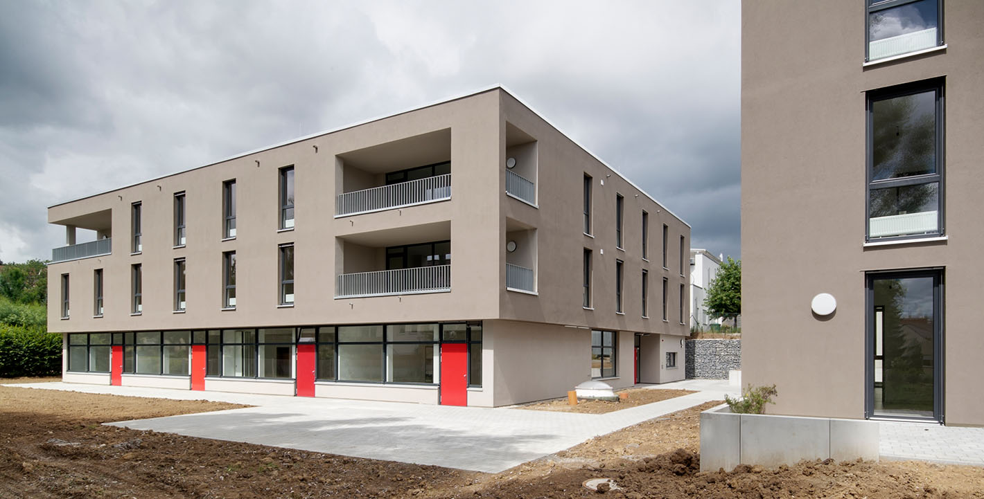 Das neue Wohnheim der Diakonie Stetten e.V. in Filderstadt-Plattenhardt schafft auf architektonischer Ebene Räume für Teilhabe und Rückzug. Die Anlage besteht aus zwei Baukörpern, die durch Maßstab, Materialität und Freiraumbezug ein harmonisches Ensemble bilden.